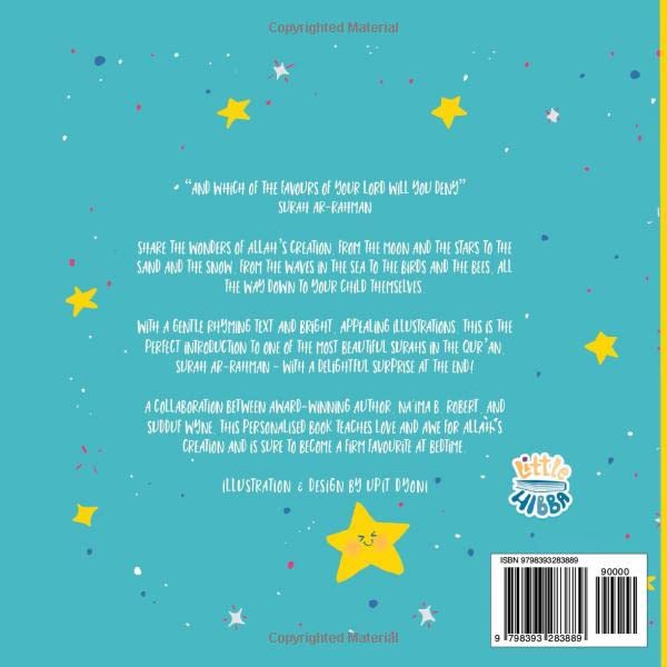 With a gentle rhyming text and bright, appealing illustrations, this is the perfect introduction to one of the most beautiful surahs in the Quran, Surah ar-Rahman, with a delightful surprise at the end.