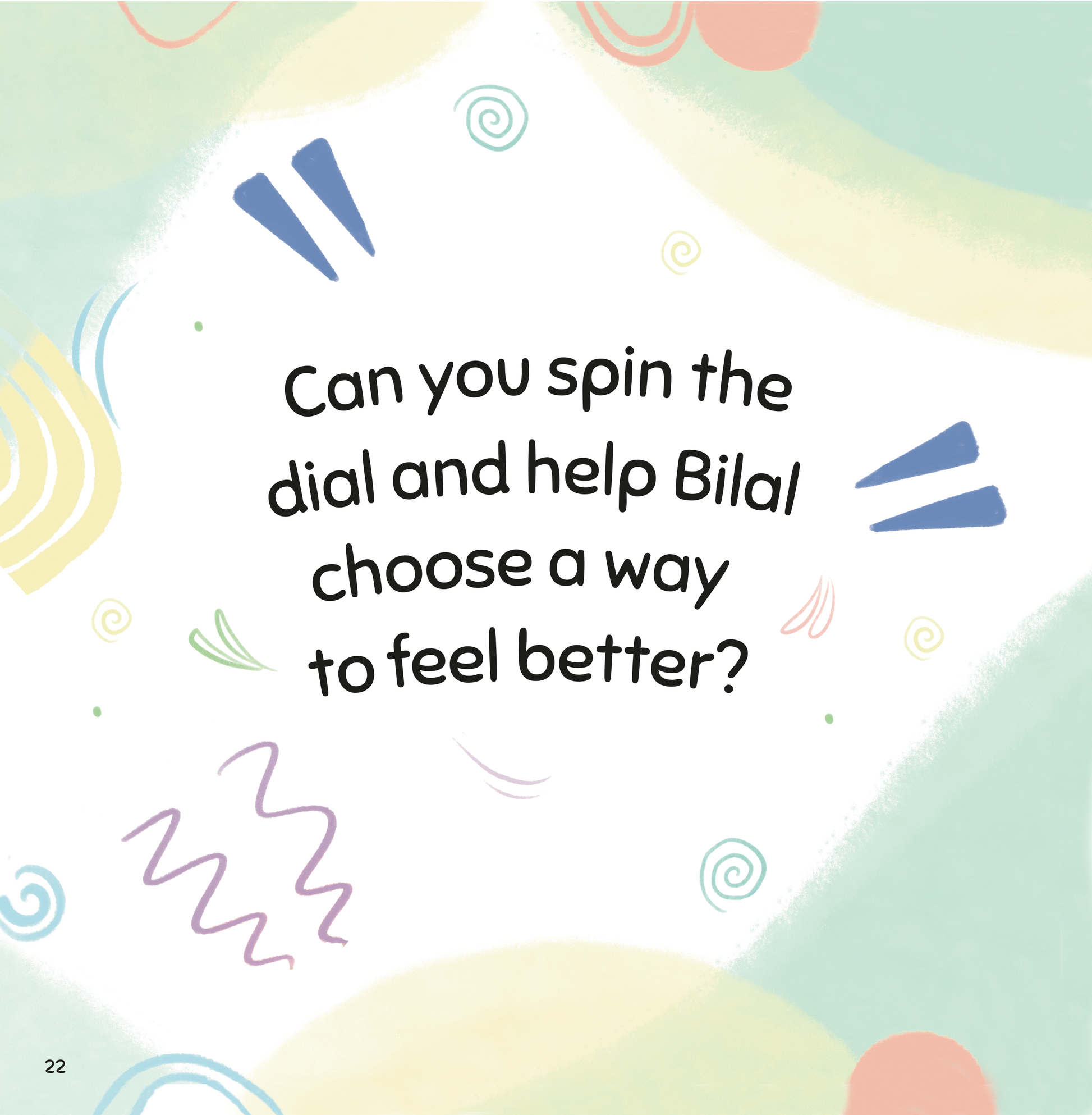 We've all been there, and today Bilal is having a day like that. Bilal's Bad Day is a charmingly coloured, interactive book: spin the dial and help Bilal choose a calming strategy to change chaos back to calm.