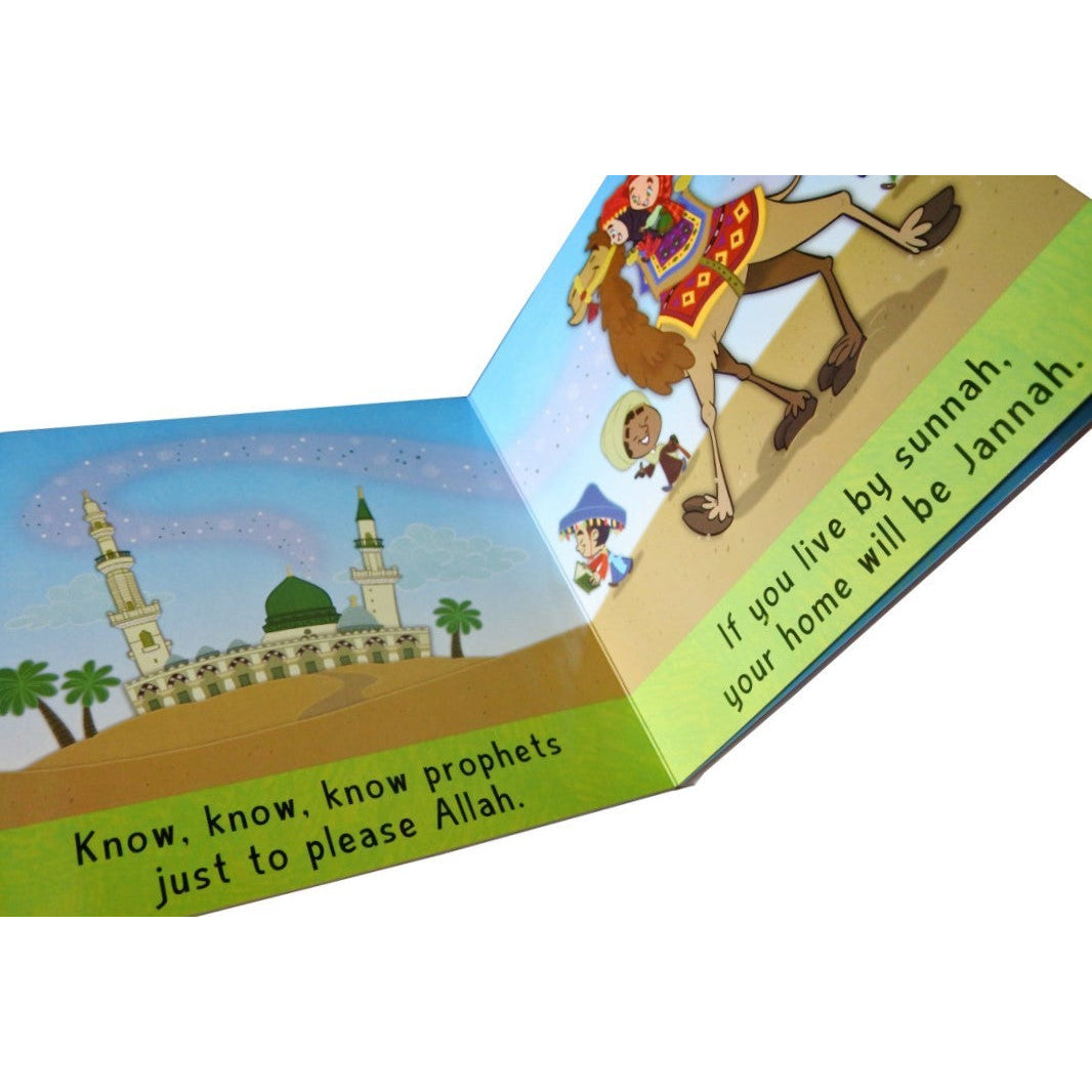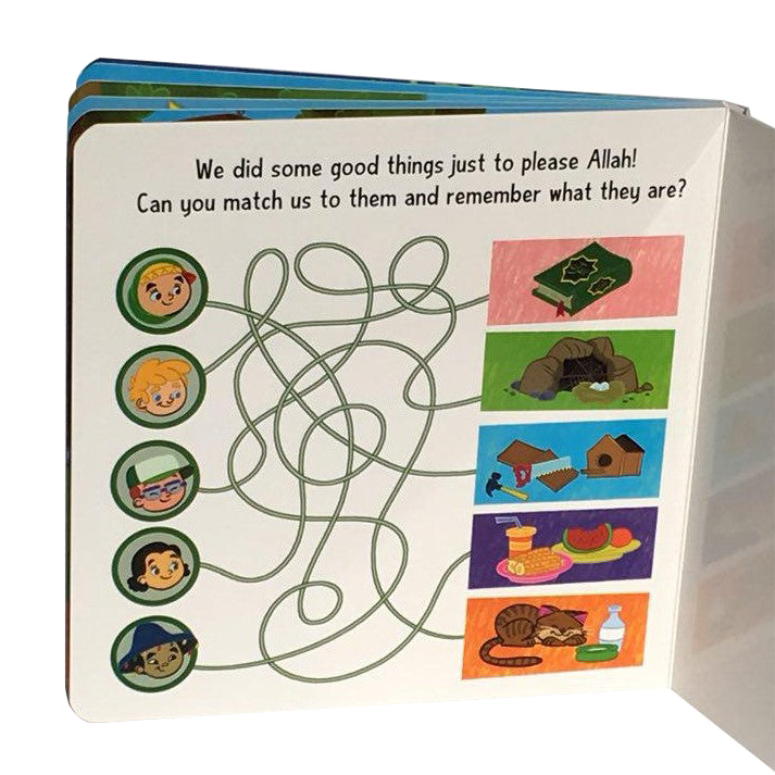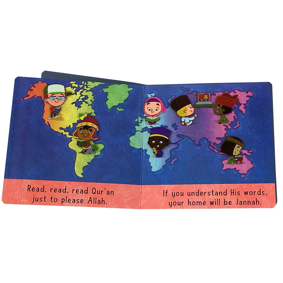 Good Deeds: Just To Please Allah is a colourful board book that encourages mini Muslims to do five things to please Allah ﷻ : read the Qur’an, learn about the prophets, repent and improve, give thanks and do good deeds.