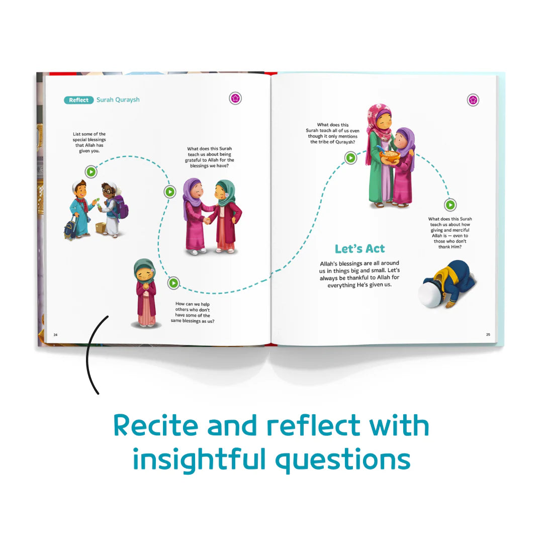 In My First Surah Book, each chapter starts with a story, then a word-by-word meaning and then reflection questions to help kids understand the Qur'an.