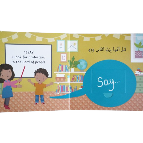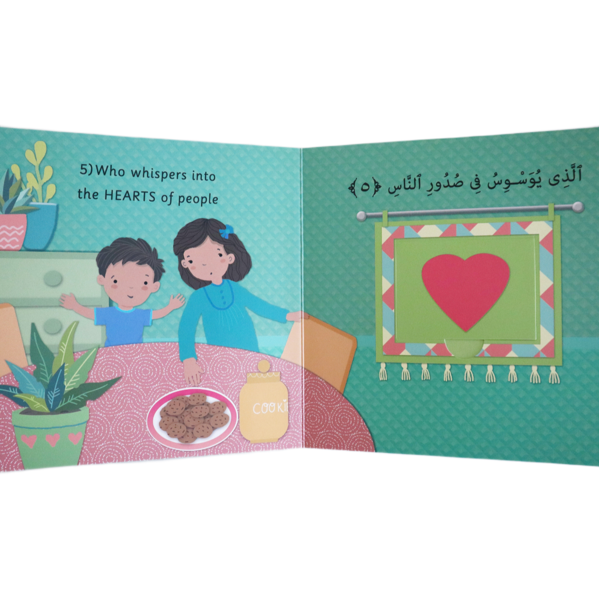 Join Ishaaq and Safina and learn Surah An-Nas with this fun lift-the-flap board book. A great way to learn and understand the Qur'an!